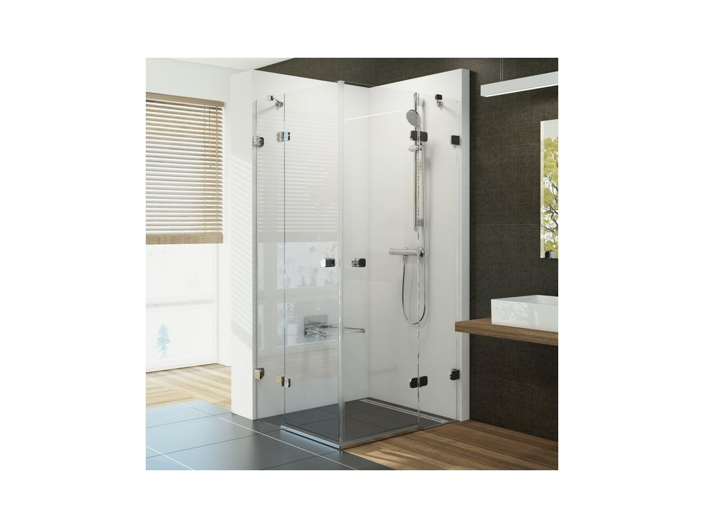 Sprchový kout BSRV4 je dodáván ve složení: pevné stěny, dveře, lišty v jednom balení. V druhém balení (B SET) jsou panty, úchyty, madla, montážní sada a pro rozměr 100 2 ks držáku Brilliant krátkého.