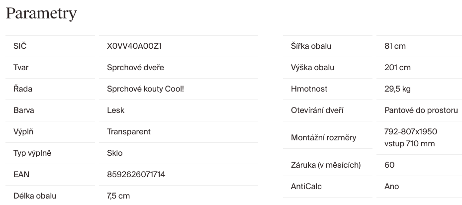 | Šířka sprchových dveří: | 80 cm |