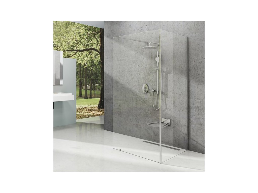 Ke sprchování podle svých představ potřebujete jen dvě skleněné stěny a elegantní kovovou vzpěru. Velikosti stěn z bezpečnostního skla lze namodelovat podle požadavků konkrétní koupelny. Díky usazení přímo na podlahu vzniká prostorný a bezbariérový sprchovací prostor na míru Vaší koupelně.