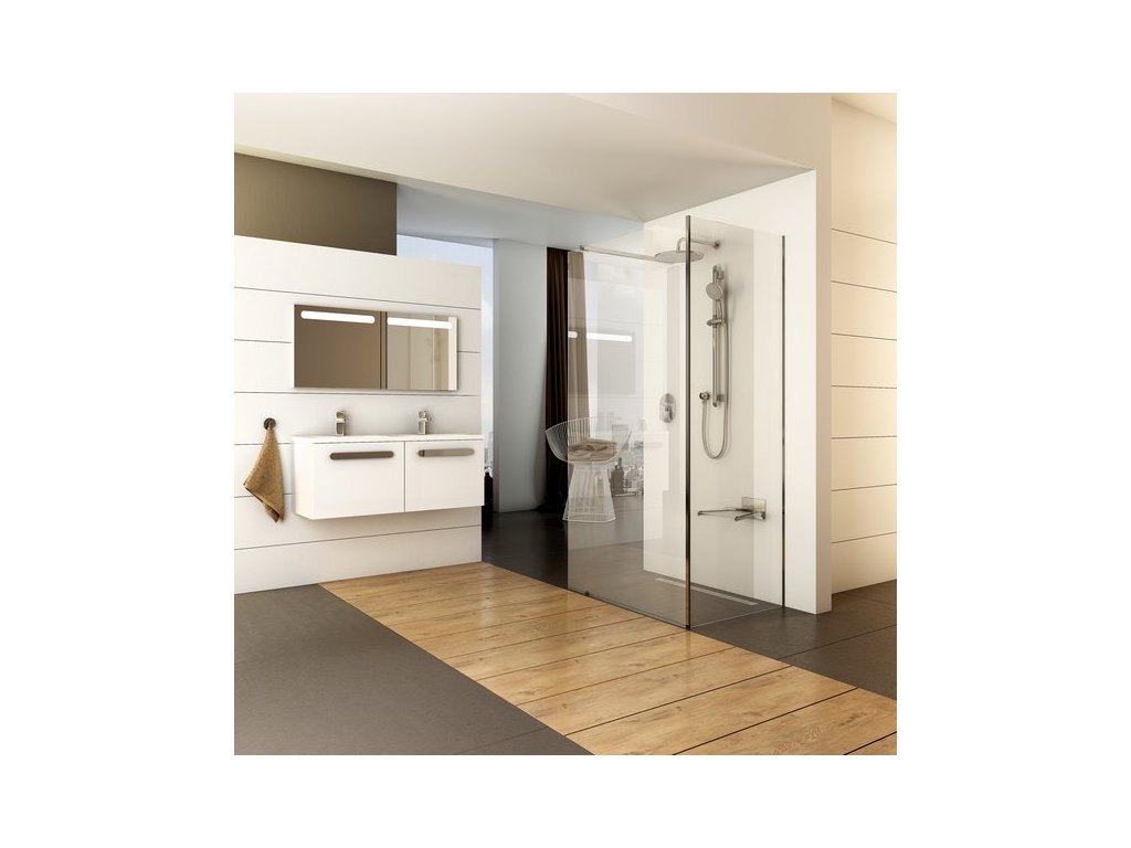 Ke sprchování podle svých představ potřebujete jen dvě skleněné stěny a elegantní kovovou vzpěru. Velikosti stěn z bezpečnostního skla lze namodelovat podle požadavků konkrétní koupelny. Díky usazení přímo na podlahu vzniká prostorný a bezbariérový sprchovací prostor na míru Vaší koupelně.