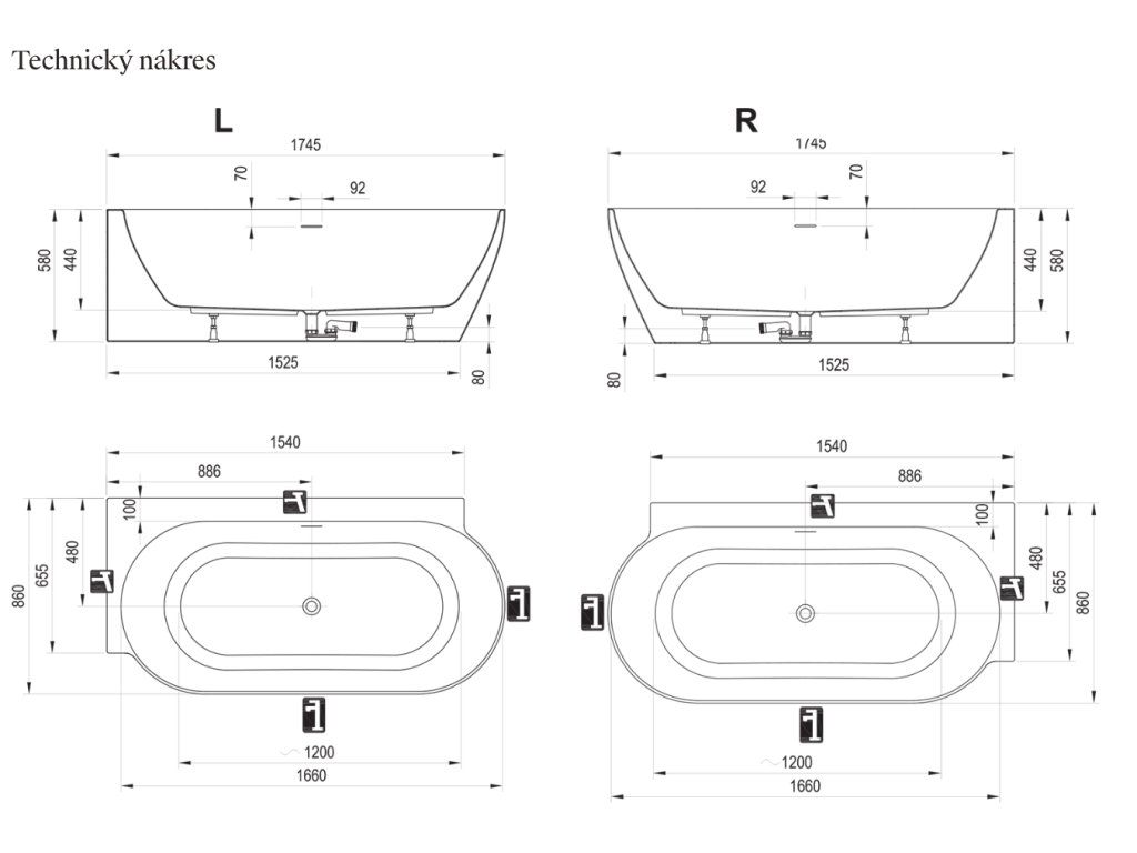 | Orientace vany: | Levá, Pravá, Pravá i levá |