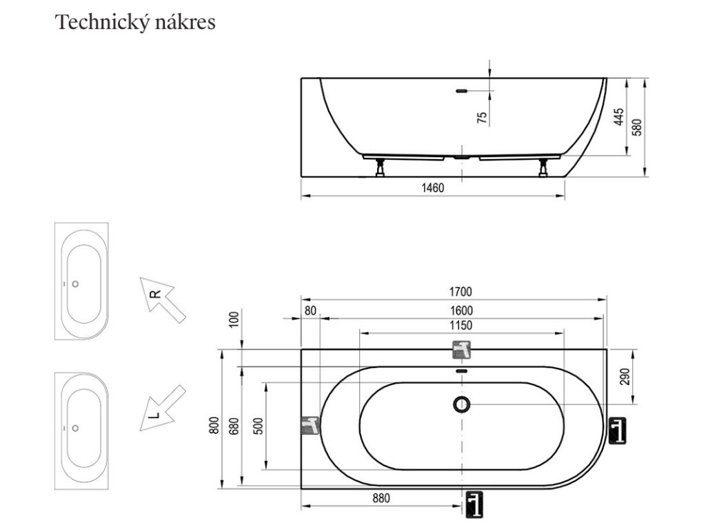 | Orientace vany: | Levá, Pravá, Pravá i levá |