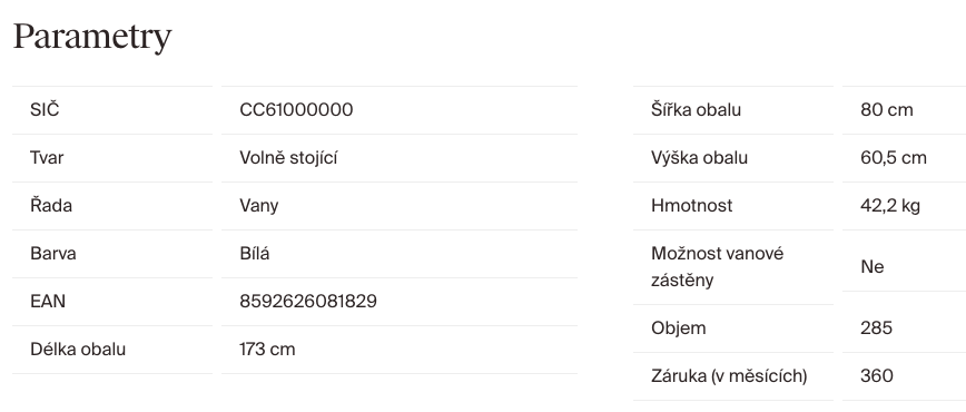 | Kategorie: | Volně stojící vany |