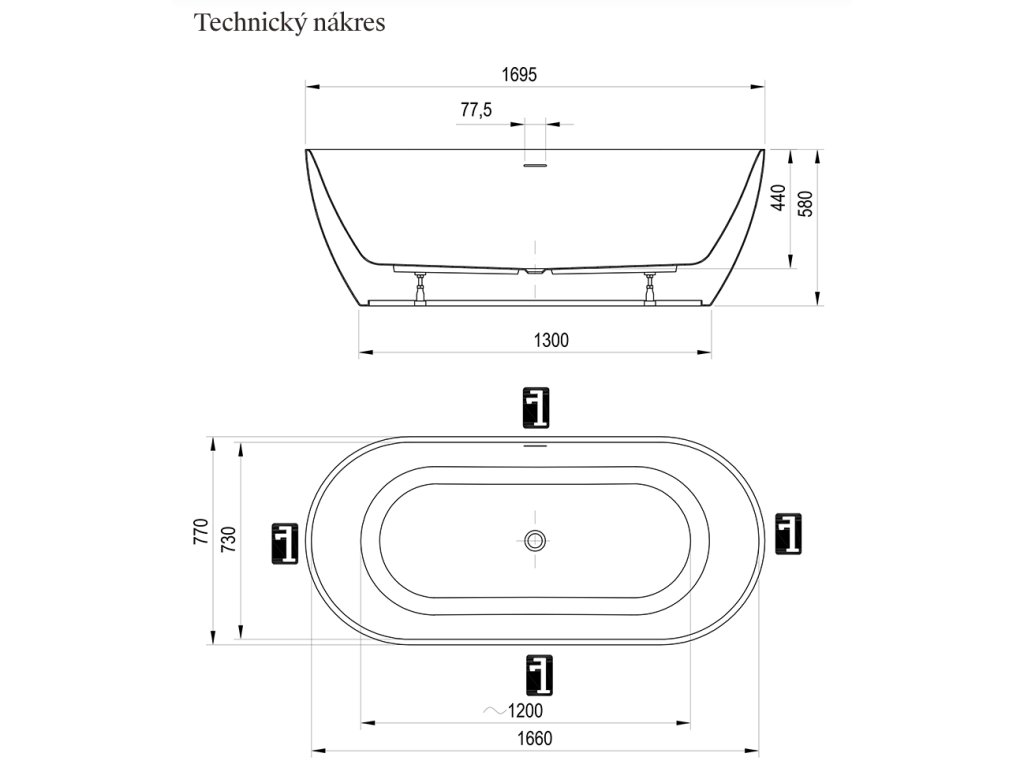 Vanu nelze doplnit vanovou zástěnou. Vanový odtokový komplet (tj. přepad, pileta, sifon, zápachová uzávěra) a podpora (nožičky) jsou součástí balení. Krytka odtoku s funkcí ClickClack je dodávána v bílé barvě. Balení 3v1 navíc obsahuje i černou a chromovou variantu pro snadnou výměnu podle vašich preferencí. K vaně nabízíme i volně stojící baterii zabudovatelnou do podlahy. Veškerý rozvod musí být veden podlahou (jak odpadový, tak přívody vody pro podlahovou baterii).