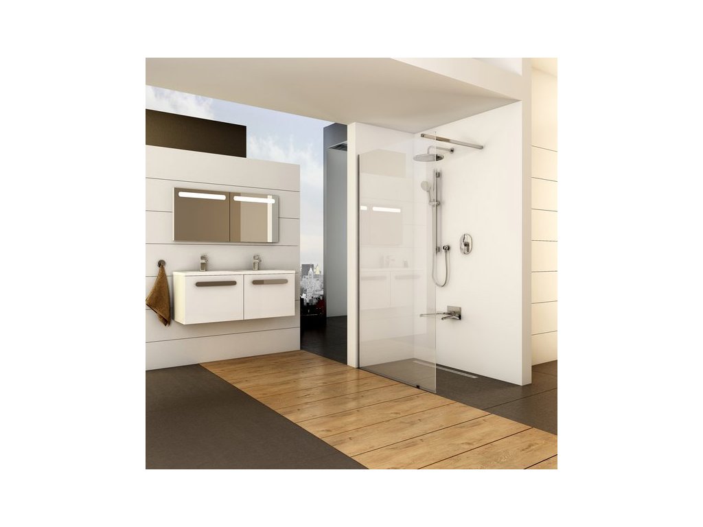 • Sprchové kouty Walk-In RAVAK jsou sestaveny s použitím kaleného bezpečnostního skla o tloušťce 8 mm již od výrobce ošetřeného technologií AntiCalc proti usazování vodního kamene. Jejich absolutní stabilitu zajišťují ustavovací profily a vzpěry v lesklém provedení vyrobené z kvalitního materiálu. U sprchových koutů typu walk-in je nejvýhodnější neomezovat se velikostí sprchových vaniček a instalovat je přímo na podlahu s odtokovým žlabem či podlahovou vpustí.