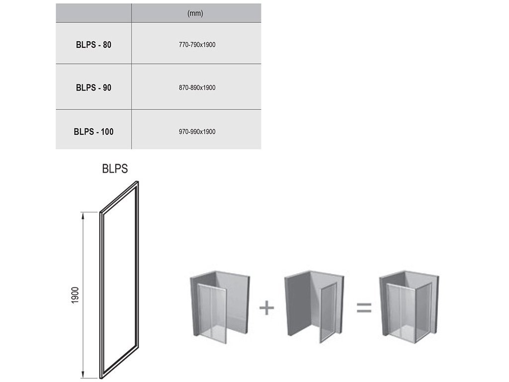 Výrobek tvoří jeden pevný díl. Montuje se do obloženého rohu koupelny (v kombinaci se sprchovými dveřmi BLDP2) na vaničky RAVAK Perseus, Perseus Pro, Perseus Pro Flat, Perseus Pro Chrome, Perseus Pro 10°, Gigant Pro, Gigant Pro Flat, Gigant Pro Chrome, Gigant Pro 10° nebo přímo na podlahu se zabudovaným odtokovým žlabem či podlahovou vpustí. Pevná stěna není určena k samostatnému použití. Kombinací sprchových dveří se dvěma pevnými stěnami typu BLPS vytvoříte sprchový kout ve tvaru „U“. Použitím nastavovacího profilu BLNPS lze výrobek rozšířit o 20 mm.