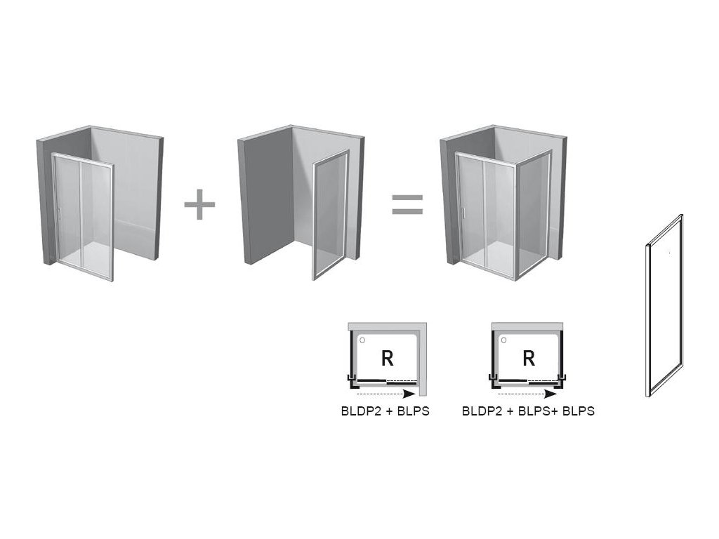 • Montuje se do obloženého rohu koupelny (v kombinaci se sprchovými dveřmi BLDP2 ) na vaničky RAVAK Perseus, Perseus Pro, Gigant Pro a Gigant Pro FLAT nebo přímo na podlahu se zabudovaným odtokovým žlabem. Pevná stěna není určena k samostatnému použití. Kombinací sprchových dveří se dvěma pevnými stěnami typu BLPS vytvoříte sprchový kout ve tvaru „U“. Použitím nastavovacího profilu BLNPS lze výrobek rozšířit o 20 mm. Pevnou stěnu a sprchové dveře umíme řešit i na míru.