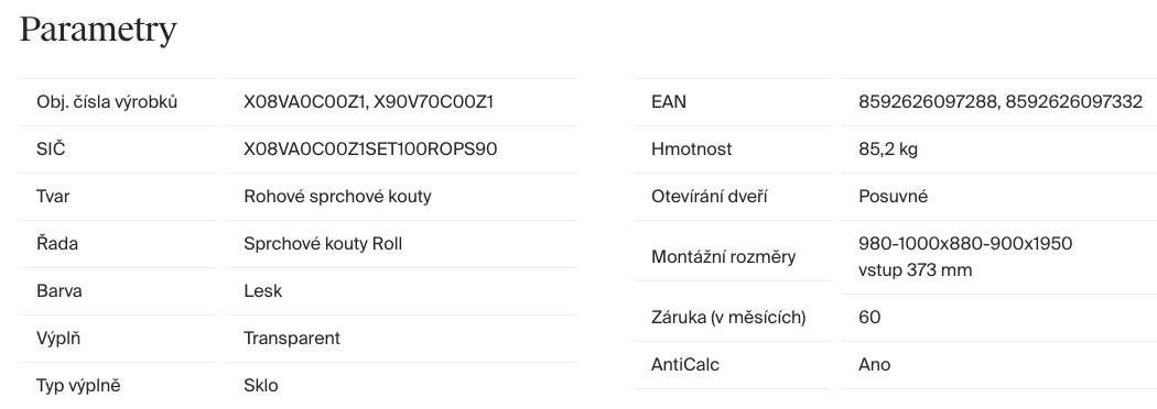 | Hloubka sprchových dveří: | 90 cm |