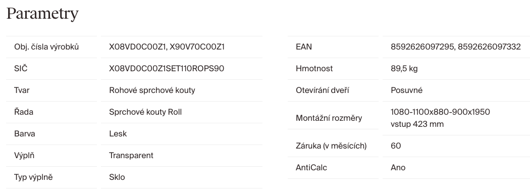 | Typ otevírání: | Dvoudílné, S boční stěnou |