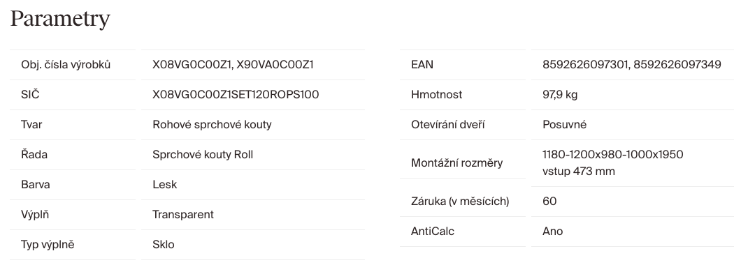 | Šířka sprchových dveří: | 120 cm |