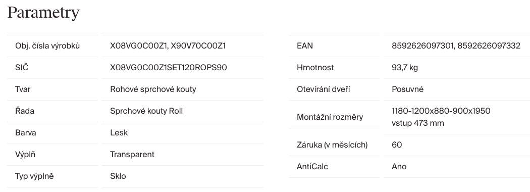 | Hloubka sprchových dveří: | 90 cm |