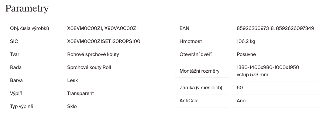 | Výška sprchových dveří: | 195 cm |