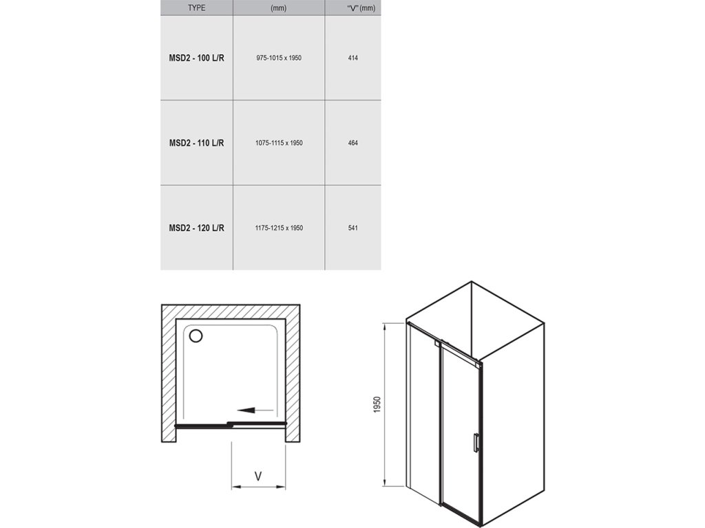 Výrobek se skládá ze dvou dílů, z nichž jeden díl tvoří posuvné dveře. Montuje se do obložené koupelny (do vyzděné niky) přímo na podlahu se zabudovaným odtokovým žlabem či podlahovou vpustí.