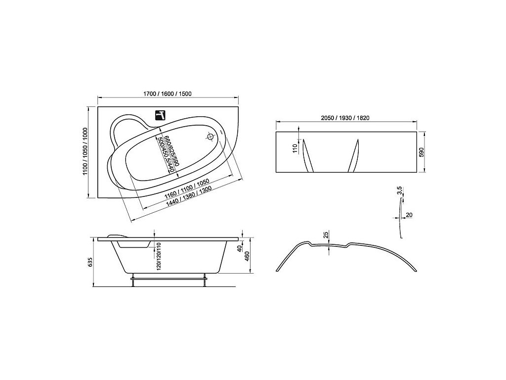Ravak Vana asymetrická 170×110 cm levá, ASYMMETRIC 170 L - C481000000