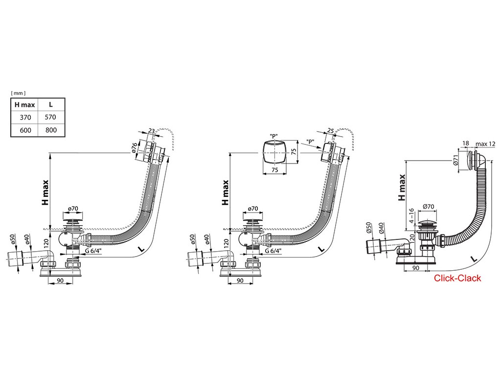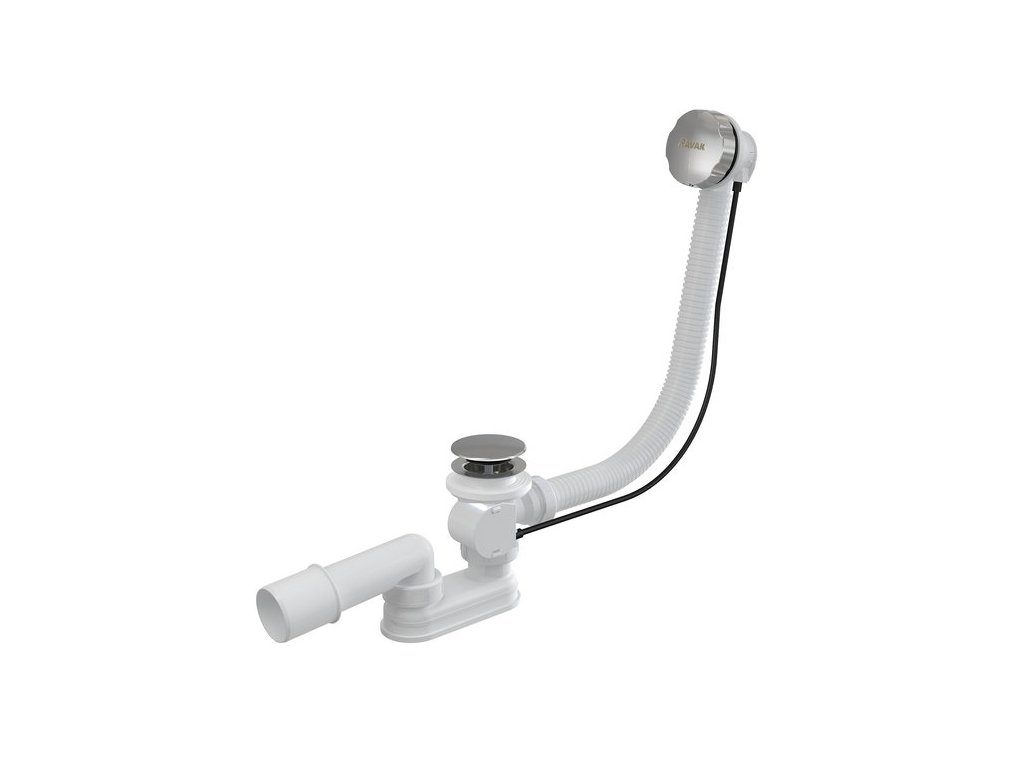 Vanové odtokové komplety s přepadem v délce 570 mm nebo 800 mm si můžete vybrat s ovládáním výpusti bowdenem. Součástí každého odtokového kompletu je i sifon (zápachová uzávěra.)