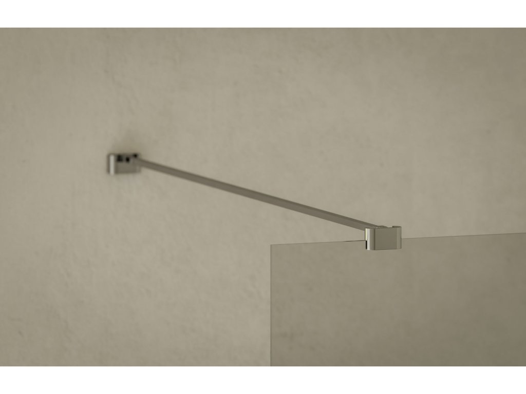 Sprchový kout Walk-In Air Wall tvoří tvrzené bezpečnostní sklo o tloušťce 6 mm. Stabilitu výrobku zajišťuje kovová vzpěra s délkou 120 cm, kterou je možné libovolně zkrátit podle požadované šířky vstupu.
