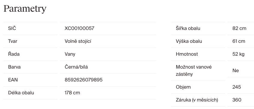 | Orientace vany: | Levá, Pravá, Pravá i levá |