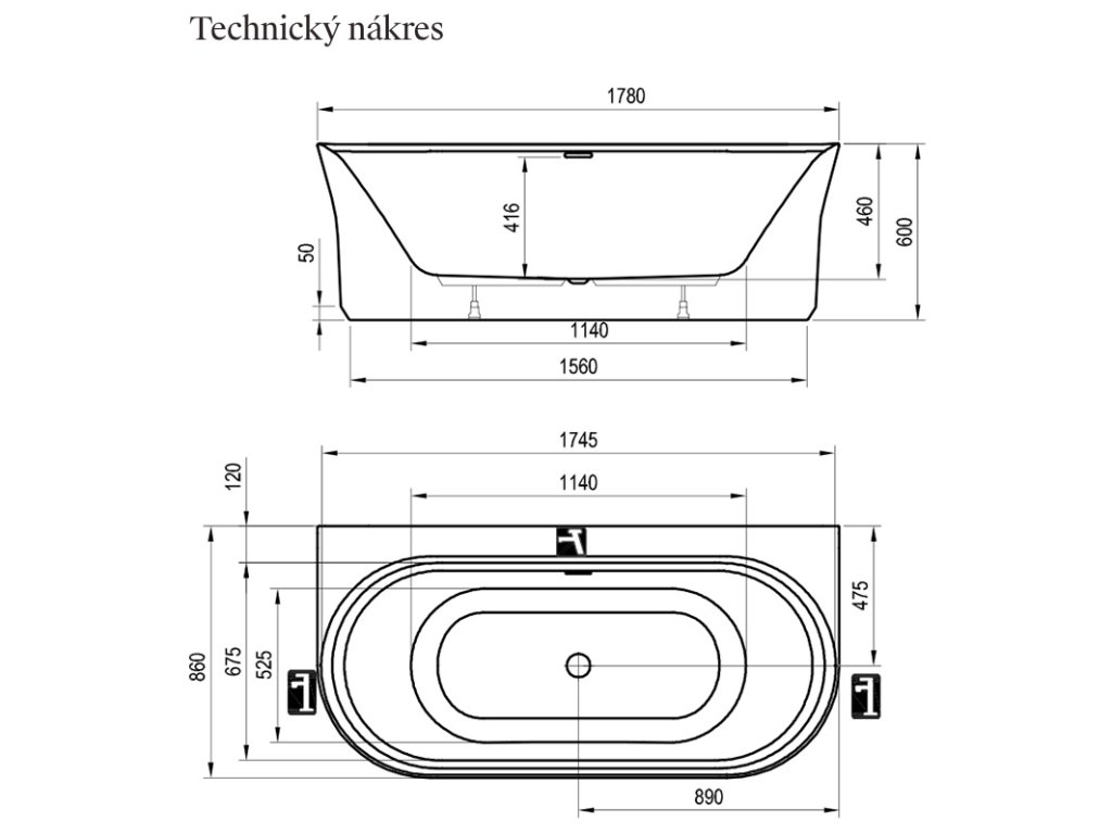 Ravak Ypsilon Wall volně stojící vana 178x86 cm