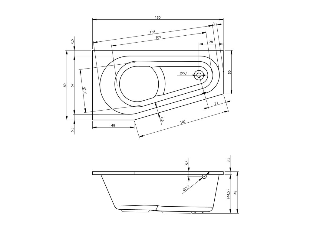 Riho Delta asymetrická vana 150x80 cm, pravá - B066001005