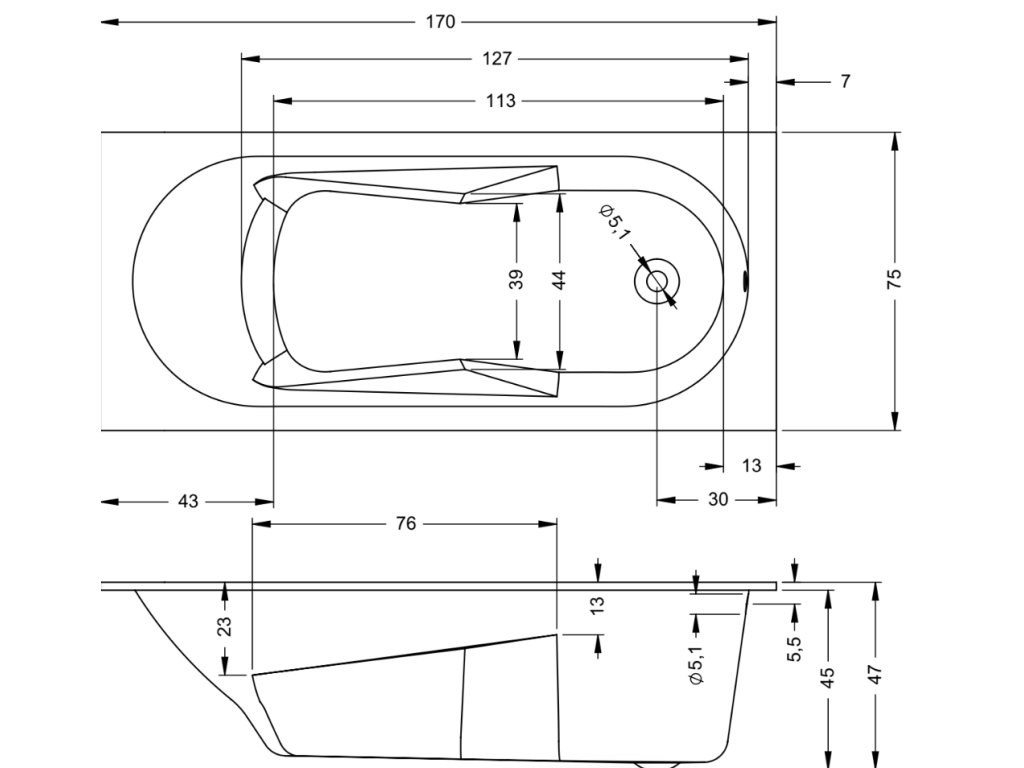 Riho Lazy obdélníková vana 170x75 cm - B078001005