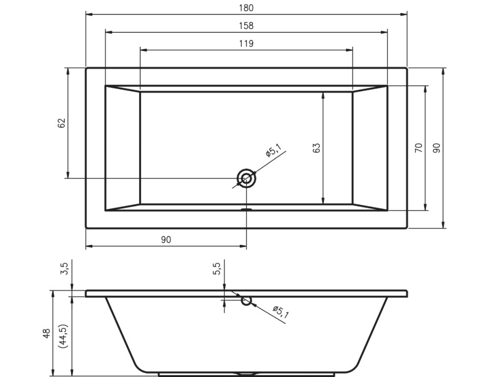 - Obdélníkové vany: nadčasový tvar, který se postará o luxusní vzhled, dostatek prostoru k volnosti pohybu a optimální tvar pro ležení. Vyberte si například vestavnou vanu Lima nebo Lusso.