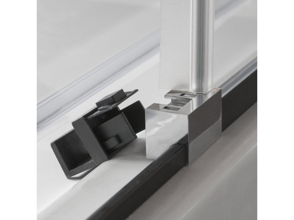 Čištění dveří nikdy nebylo snazší. Na spodní části dveří naleznete 2 černé kostky, na kterých se nachází "čudlík". Čudlík zmáčknete a vysunete ho směrem dovnitř sprchového koutu a tím zajistíte vyklopení dveří. Avšak pozor, musíte zmáčknout oba čudlíky na obou kostkách zároveň. Černou kostku odejmete ze spodní části sprchových dveří a můžete čistit. Po údržbě kostku jen nandáte zpět na spodní část dveří a zasunete ji zpátky do pevné stříbrné částiPOZOR! Když kostku nandáváte zpět, musíte dovnitř dát i těsnění dveří. Při odklopení spodní části dveře zůstávají upevněné v horních pojezdech a vy se tak nemusíte obávat obtížné manipulace nebo poranění.