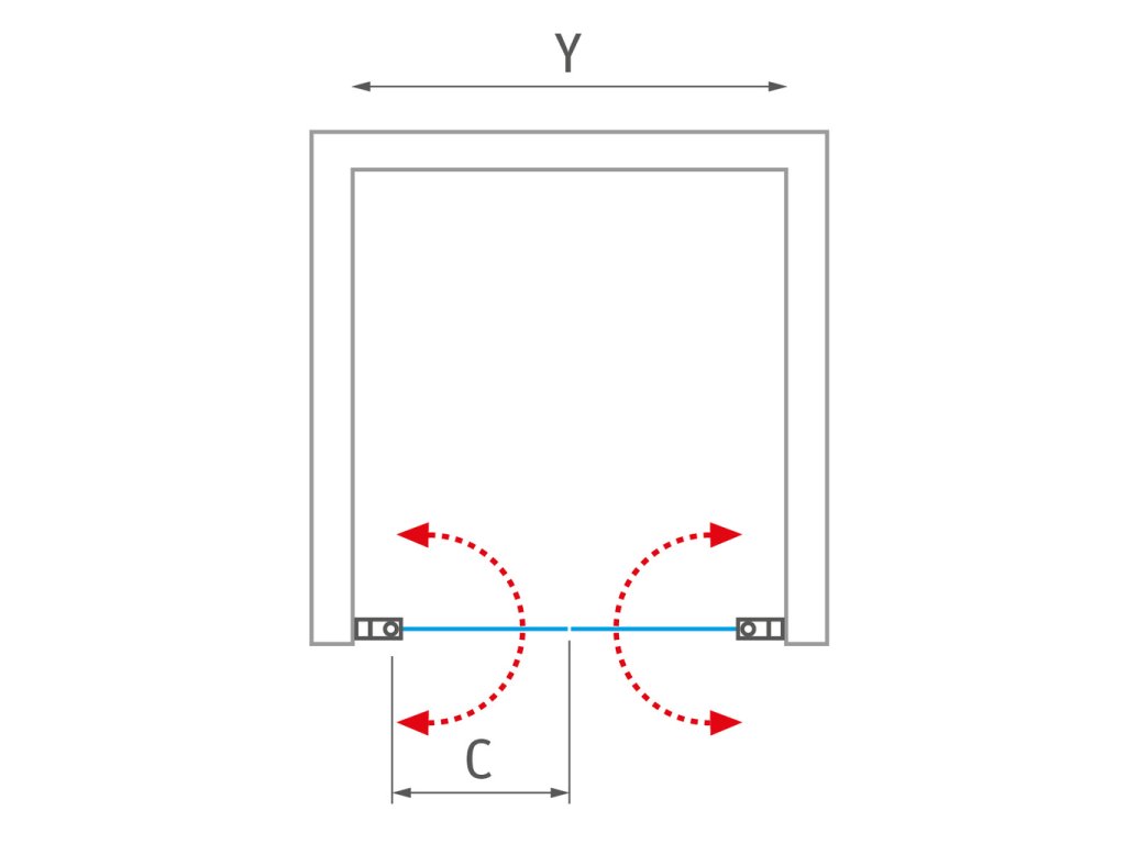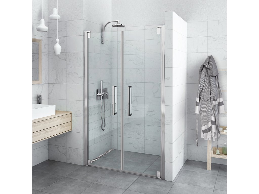 Dvoukřídlé otevírací sprchové dveře pro instalaci do niky