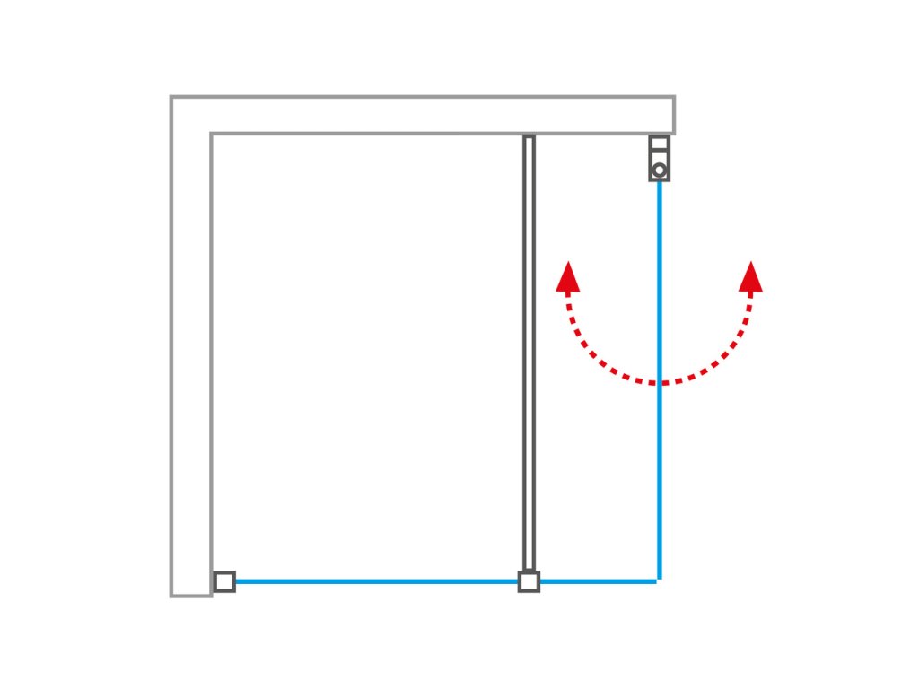 Čtvercový nebo obdélníkový kout je bezrámový, díky čemuž působí prostornějším dojmem a je vybaven jednokřídlým otevíráním s nenápadným těsněnímMezi dveřmi a pevnou stěnou se nachází oboustranné magnetické těsnění zajišťující maximální vodotěsnost. Na spodní hraně sprchových dveří nalezneme těsnící silikonový praporek, který zabraňuje podstřiku vody pod dveřmi.