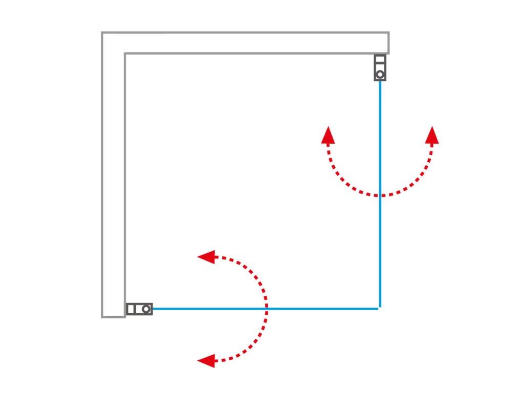 Čtvercový sprchový kout s dvoukřídlými dveřmi