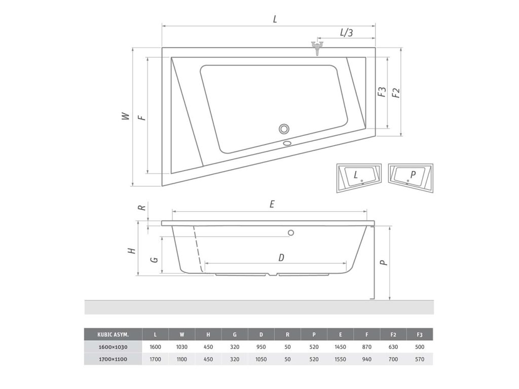 Panel přísluší k vanám KUBIC ASYMMETRIC.