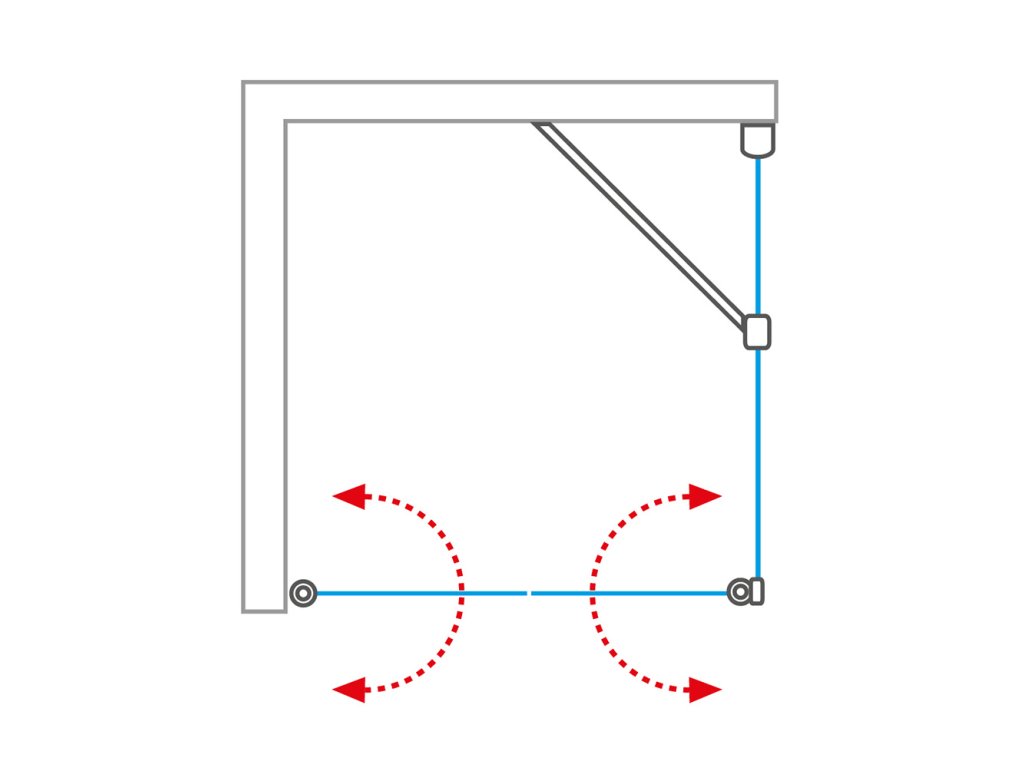 Čtvercová nebo obdélníková kombinace dvoukřídlých sprchových dveří a boční stěny