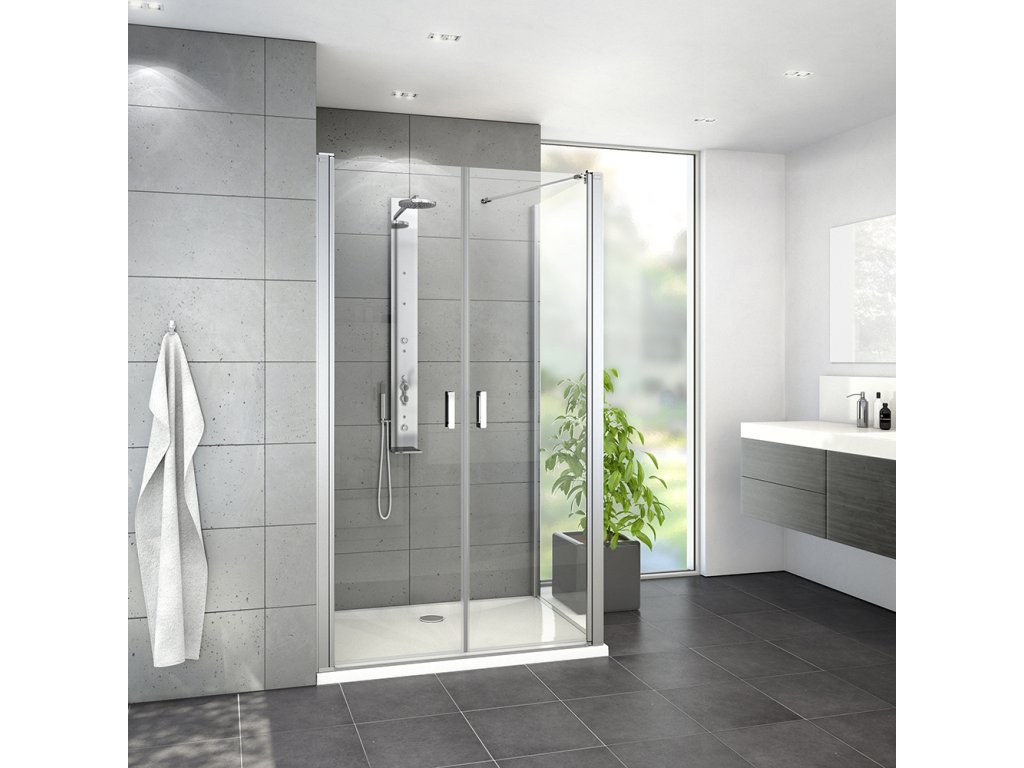 Čtvercová nebo obdélníková kombinace dvoukřídlých sprchových dveří a boční stěny
