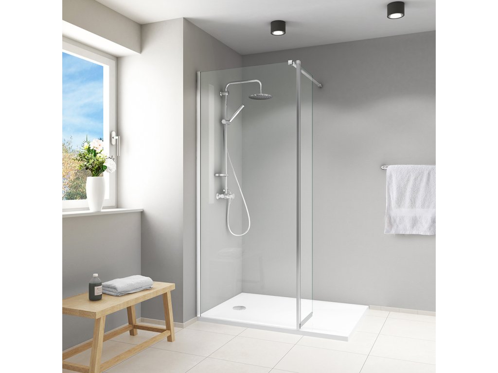 Pro upevnění zástěny, a tudíž zajištění její maximální stability, slouží flexibilní hliníková vzpěra v povrchové úpravě Brillant, která umožňuje nastavení různých úhlů a řeší i případné nerovnosti stěn. Délku vzpěry je možné přizpůsobit konkrétním potřebám, a to až do překvapivých 1200 mm. Díky jednoduchému upevnění lze sprchovou zástěnu instalovat v levém i pravém provedení. Bezpečnostní sklo sprchové zástěny se vrábí v provedení Transparent a hliníkový profil jsou v provedení Brillant.