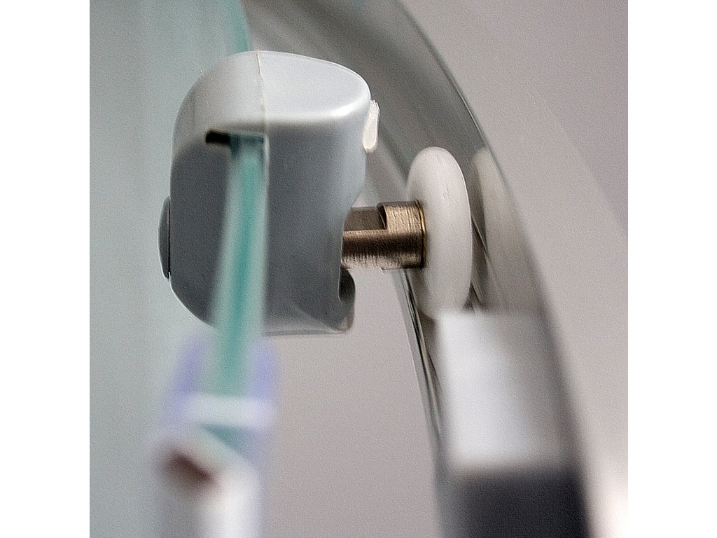 Sprchový box disponuje nadčasovými hliníkovými bílými profily a 4 mm výplní bezpečnostních skel v provedení Transparent. Zadní stěny vyrábíme v barvě Green Satinato (velice světlá zelená). Dvoudílní dveře sprchového boxu jsou posuvné a jezdí po kvalitních pojezdech. Dveře zdobí minimalistické, ale přesto krásné madlo.