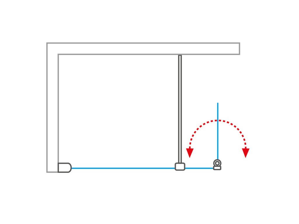 Praktické a chytré řešení pevné stojící stěny s teleskopickou nastavitelnou vzpěrou. Krátké sklopné dveře o šířce 383 mm pro všechny varianty slouží jako clona proti rozstřiku vody.