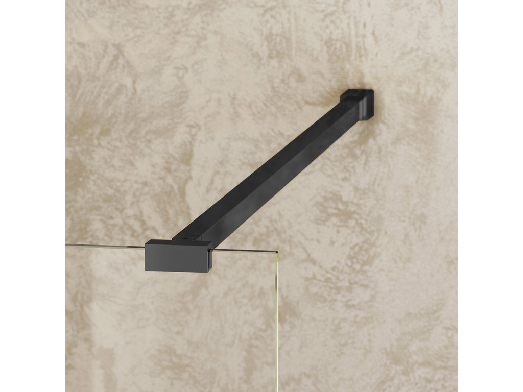 Pro upevnění zástěny, a tudíž zajištění její maximální stability, slouží designová hliníková vzpěra sladěná s barvou úhelníků - Brillant, Černá nebo Zlatá barva. Délku vzpěry je možné přizpůsobit konkrétním potřebám, a to až do překvapivých 1200 mm. Díky jednoduchému upevnění lze sprchovou zástěnu instalovat v levém i pravém provedení. Bezpečnostní sklo sprchové zástěny je v čirém provedení Transparent, kotvící úhelníky jsou pak stejně jako vzpěra v provedení Brillant, Černá nebo Zlatá barva.