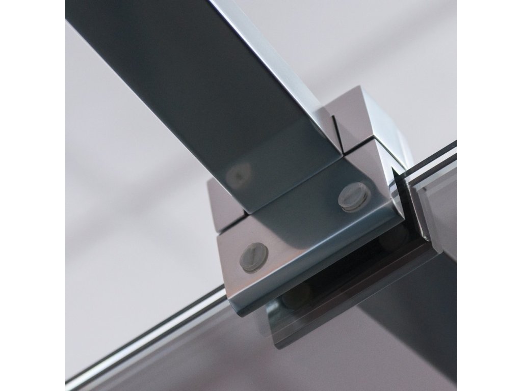 Sprchová zástěna je upevněna ke zdi pomocí dvou hliníkových vzpěr v povrchové úpravě Brillant, jež zajišťují perfektní stabilitu. Ochranná hliníková lišta na spodní hraně skla rovnoměrně rozloží případné nerovnosti na podlaze. Tyto prvky dotváří jednotný design celé sprchové zástěny.