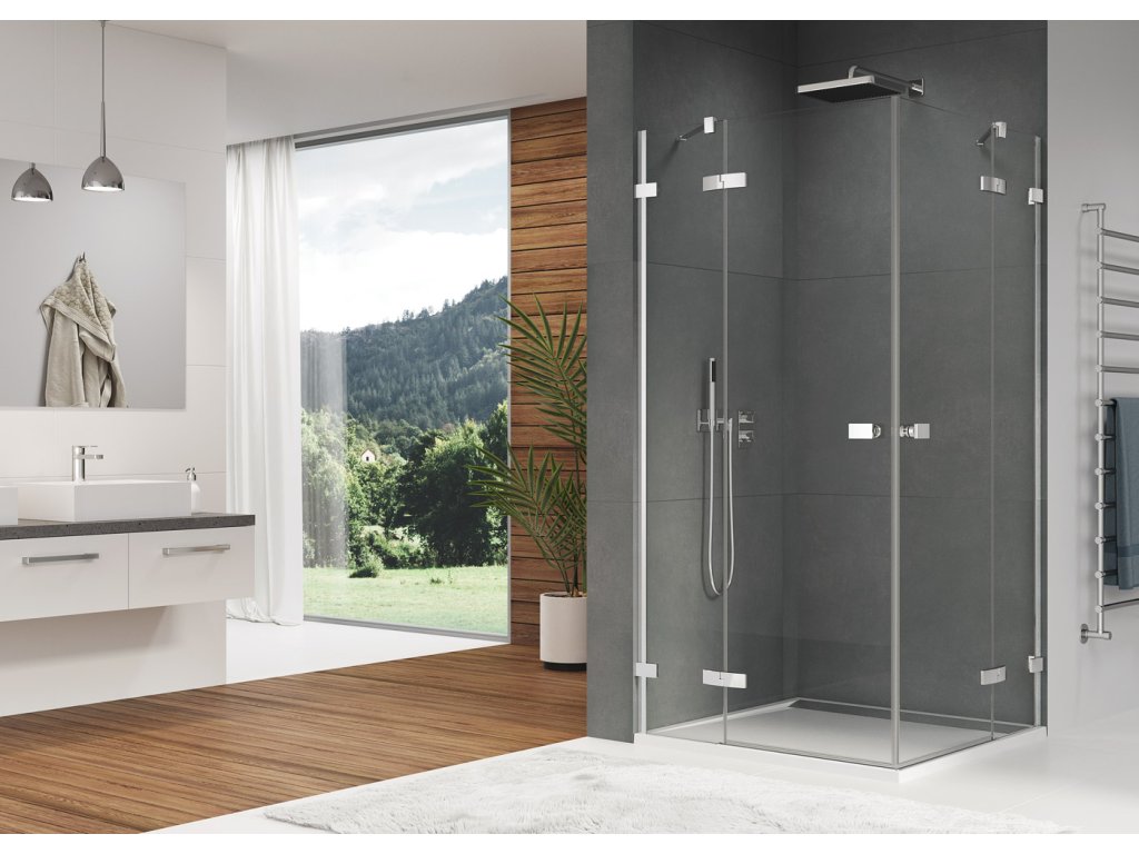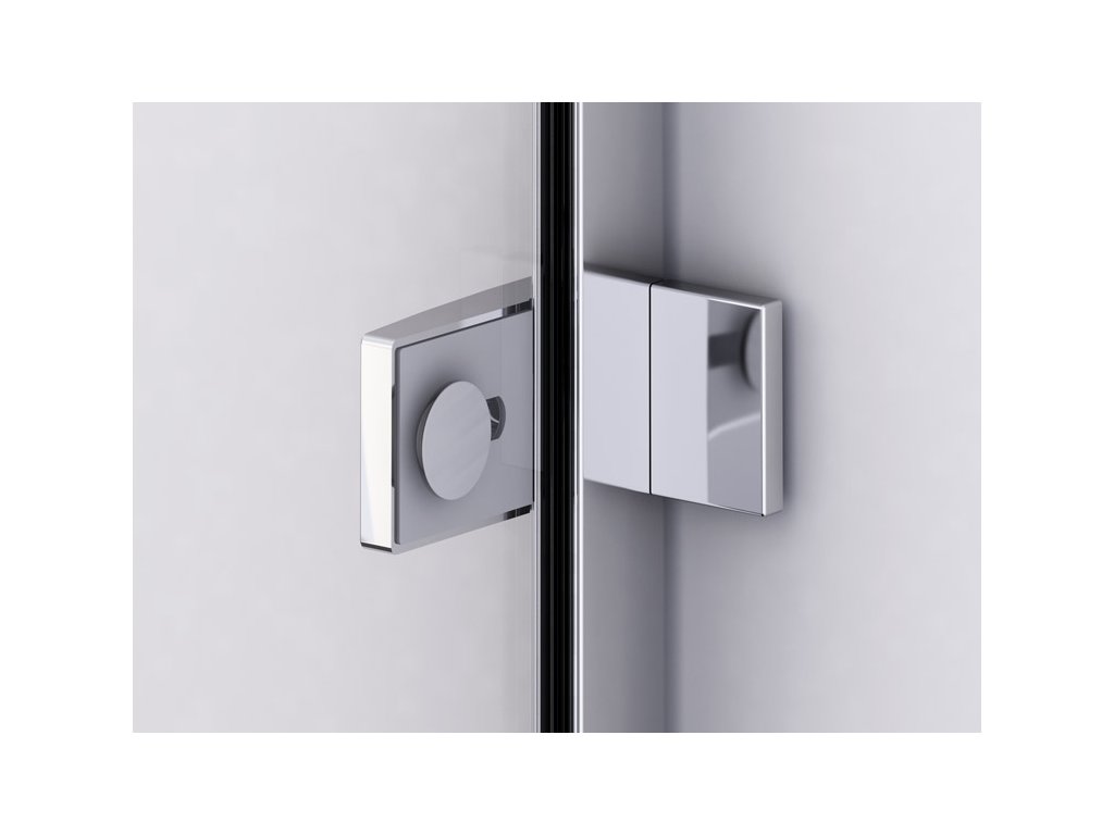 Bezpečnostní sklo - 8 mm (pevný díl), 6 mm (dveře) | integrované panty se zdvihovým mechanismem | otvírání ven | magnetické těsnění |