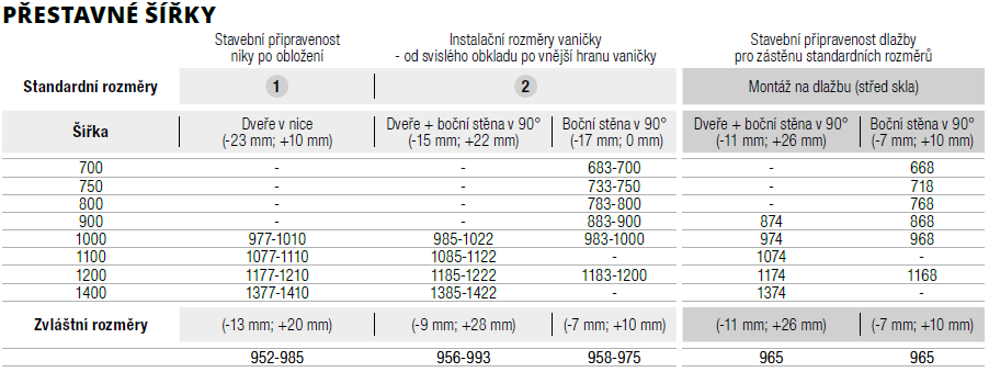 | Výbava: | Bez vaničky, Magnetické těsnění, S pevnou stěnou |