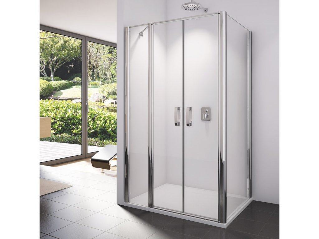 6mm bezpečnostní sklo | otvírání ven i dovnitř | rohová a vodorovná vzpěra | chromované plastové dílky a madla | magnetické těsnění | 10mm