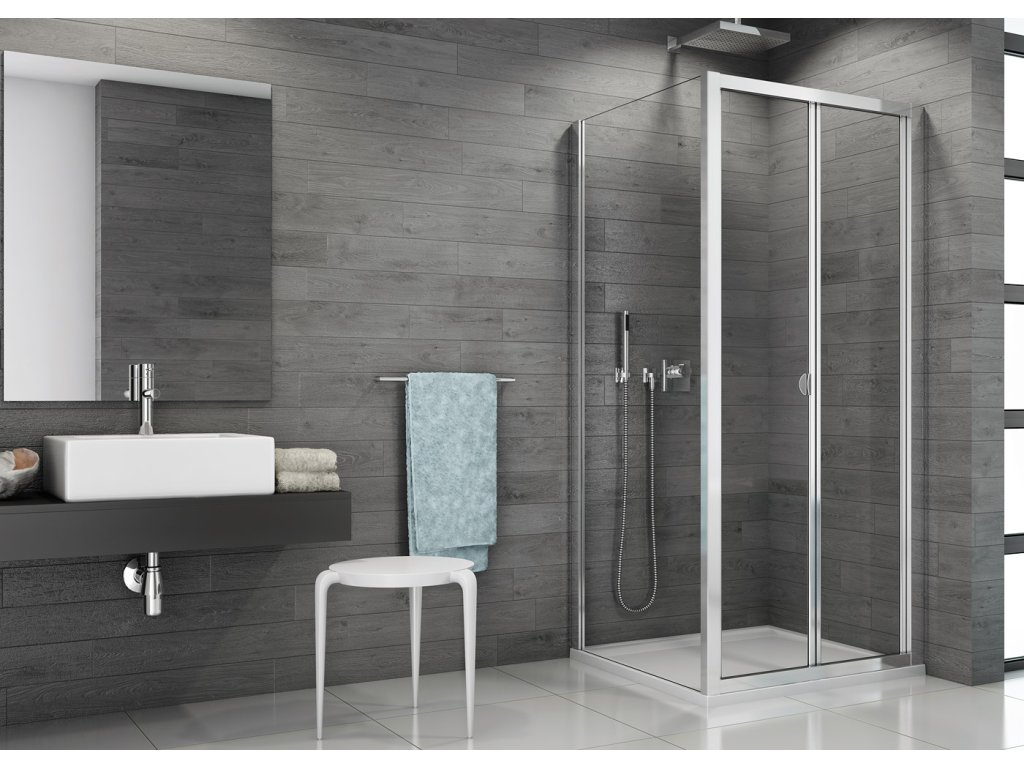3mm bezpečnostní sklo | otvírání skládáním dovnitř | magnetické těsnění | chromované plastové dílky a madlo u všech barev profilů