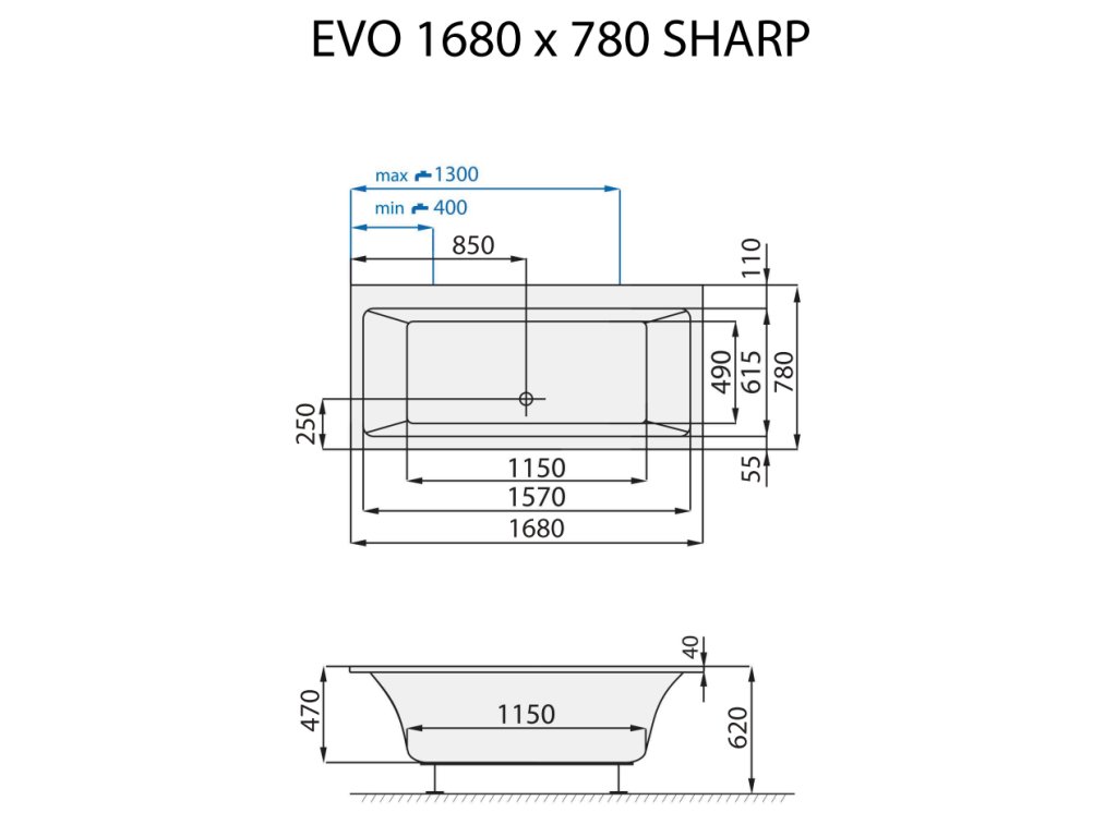 Santech OBDÉLNÍKOVÁ VANA EVO SHARP, 168x78 cm - SAEVO168-SH + dárek nohy k vaně Santech ZDARMA