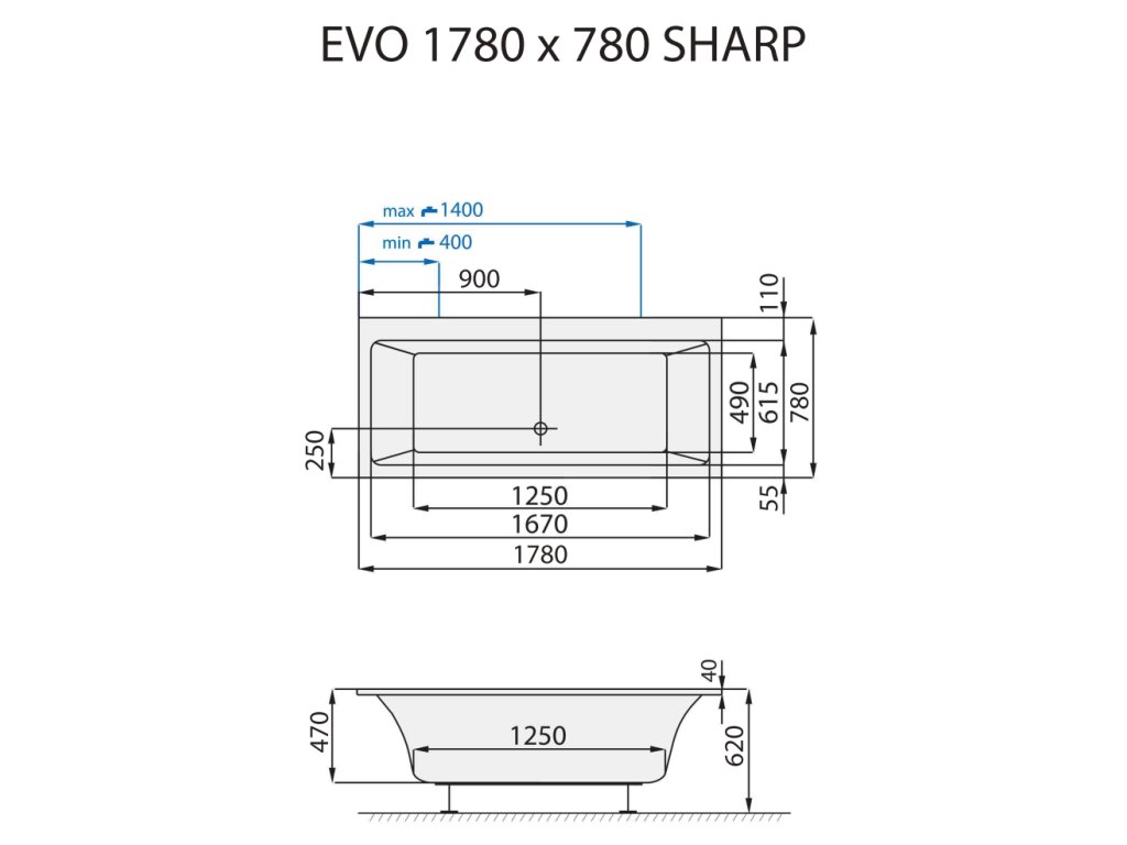 Santech OBDÉLNÍKOVÁ VANA EVO SHARP, 178x78 cm - SAEVO178-SH + dárek nohy k vaně Santech ZDARMA