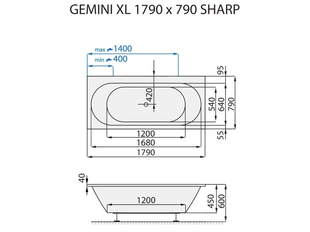 Novinka z dílna Santech GEMINI XL se může pochlubit příjemným a pohodlným ležením díky optimálnímu sklonu zádové části vany. Velkorysý vnitřní prostor s nadstandardní šířkou dna 54 cm bude vyhovovat i osobám plnějších tvarů. Široký okraj nabízí komfortní odkládací plochu. Zároveň je ideálním místem pro instalaci vanové baterie.