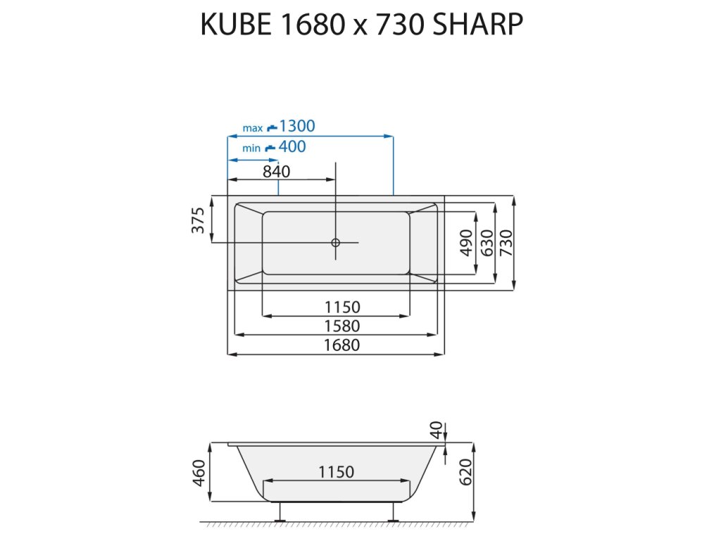 Santech OBDÉLNÍKOVÁ VANA KUBE SHARP, 168x73 cm - SAKUB168-SH + dárek nohy k vaně Santech ZDARMA