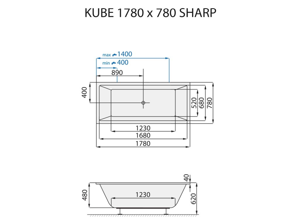 Santech OBDÉLNÍKOVÁ VANA KUBE SHARP, 178x78 cm - SAKUB178-SH + dárek nohy k vaně Santech ZDARMA