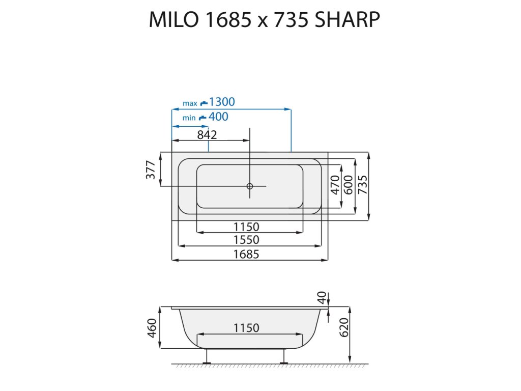 Santech OBDÉLNÍKOVÁ VANA MILO SHARP, 168,5x73,5 cm - SAMIL168-SH + dárek nohy k vaně Santech ZDARMA