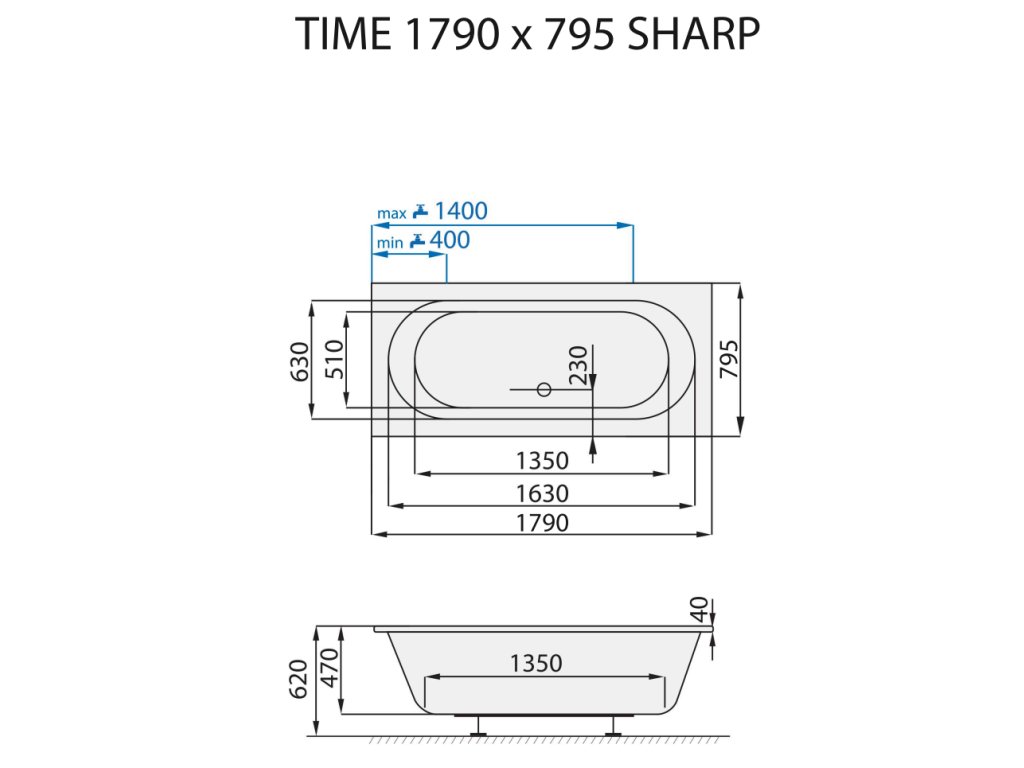 Santech OBDÉLNÍKOVÁ VANA TIME SHARP, 179x79,5 cm - SATIM179-SH + dárek nohy k vaně Santech ZDARMA
