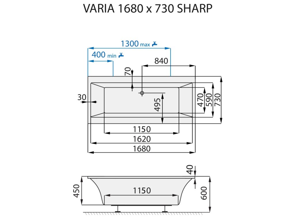 Santech OBDÉLNÍKOVÁ VANA VARIA SHARP, 168x73 cm - SAVAR168-SH + dárek nohy k vaně Santech ZDARMA