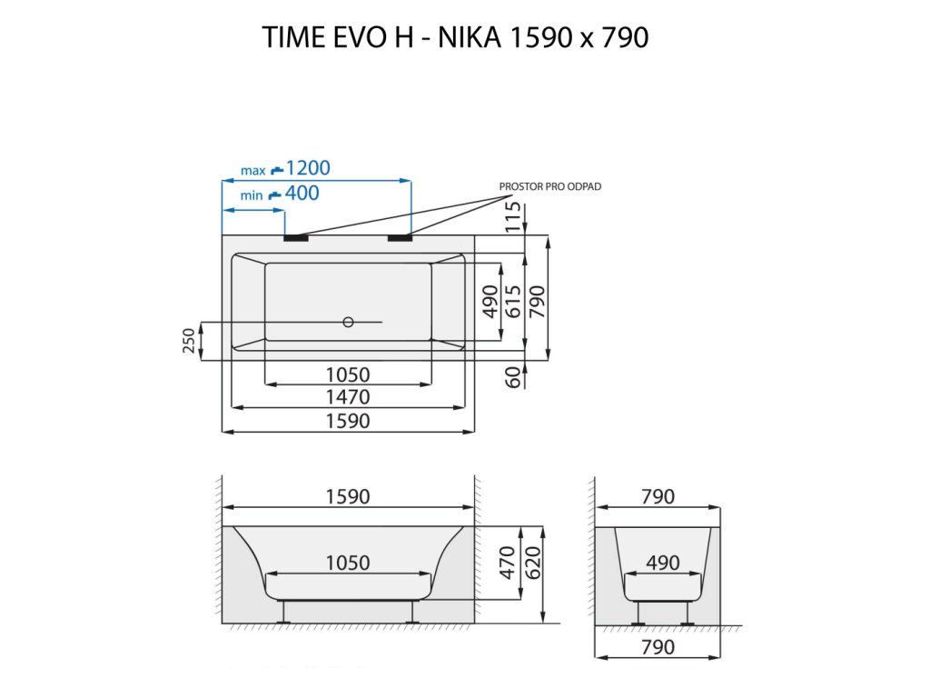 | Provedení | samonosná volně stojící vana do niky |